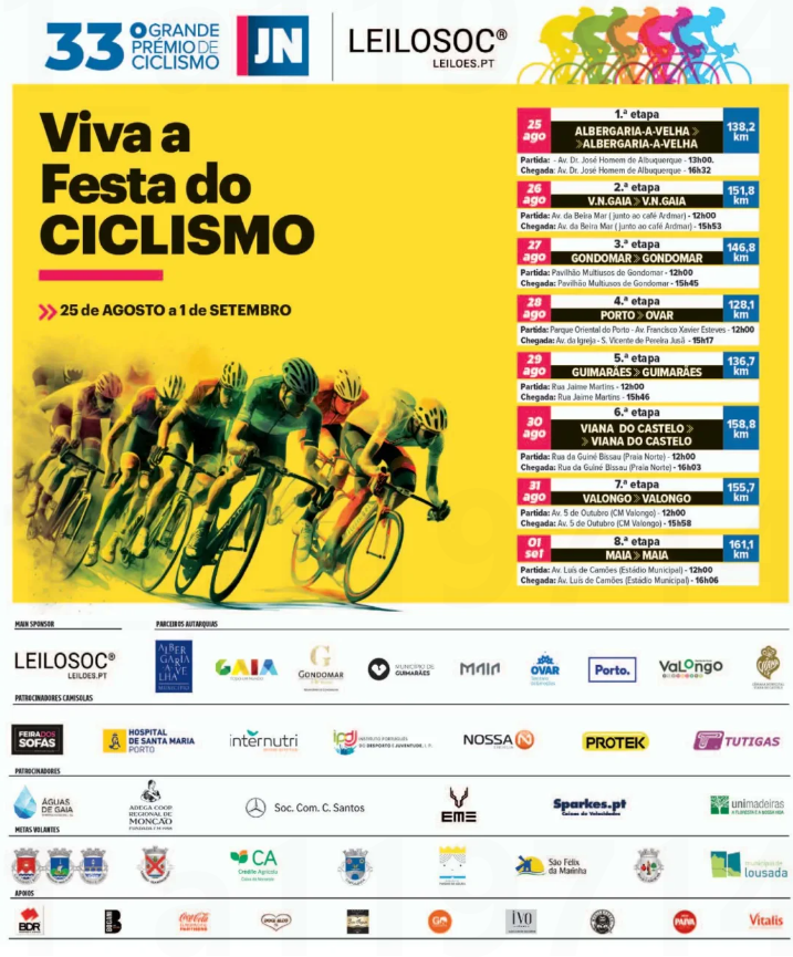 Valongo volta a receber o Grande Prémio de Ciclismo do Jornal de Notícias. A penúltima etapa da 33.º edição deste prestigiado evento desportivo realiza-se no sábado, dia 31 de agosto, com partida e chegada na Avenida 5 de Outubro.