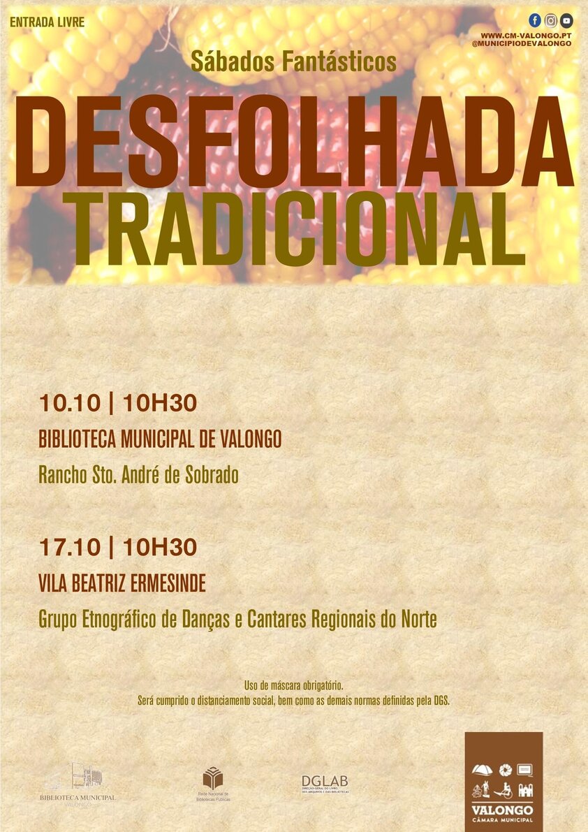 No próximo sábado, dia 10 de outubro, pelas 10h30, a Biblioteca Municipal de Valongo vai receber o Rancho Folclórico Santo André de Sobrado para a recriação da tradicional desfolhada.