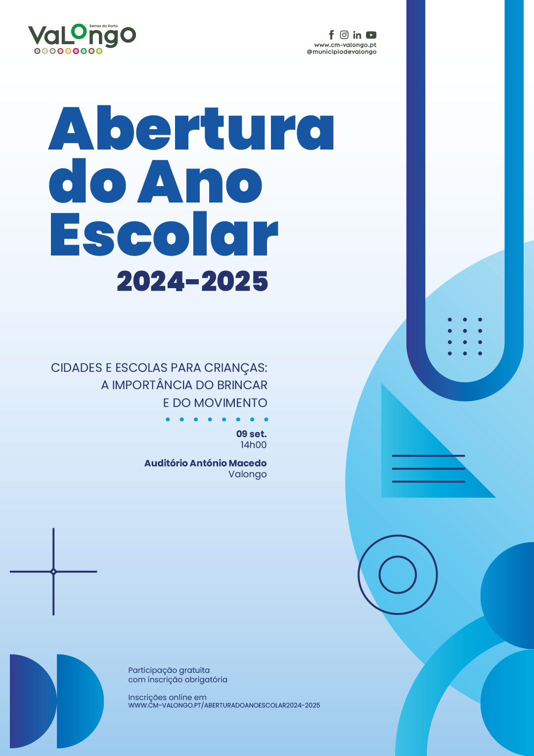 Inscrições em: https://www.cm-valongo.pt/aberturadoanoescolar2024-2025