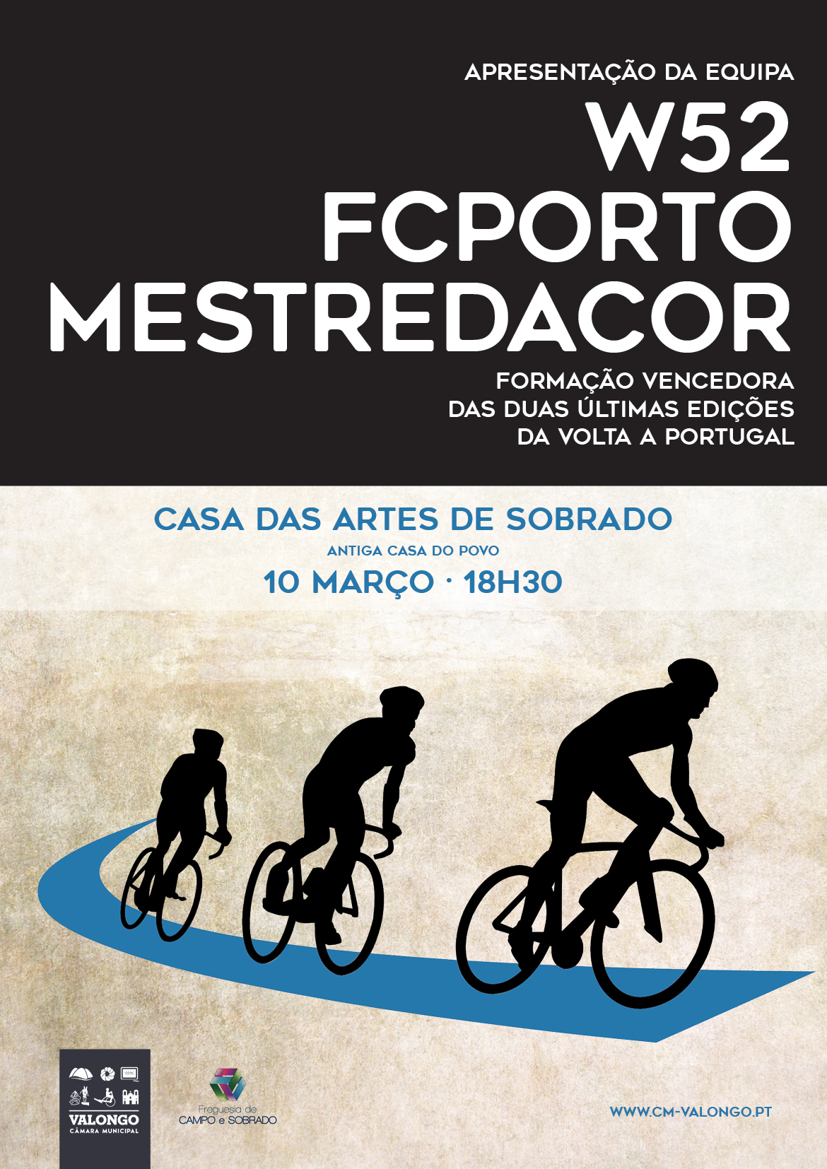 A apresentação pública da equipa de ciclismo W52 - FC Porto realiza-se na sexta-feira, dia 10 de março, pelas 18h30, na Casa das Artes de Sobrado (antiga Casa do Povo).