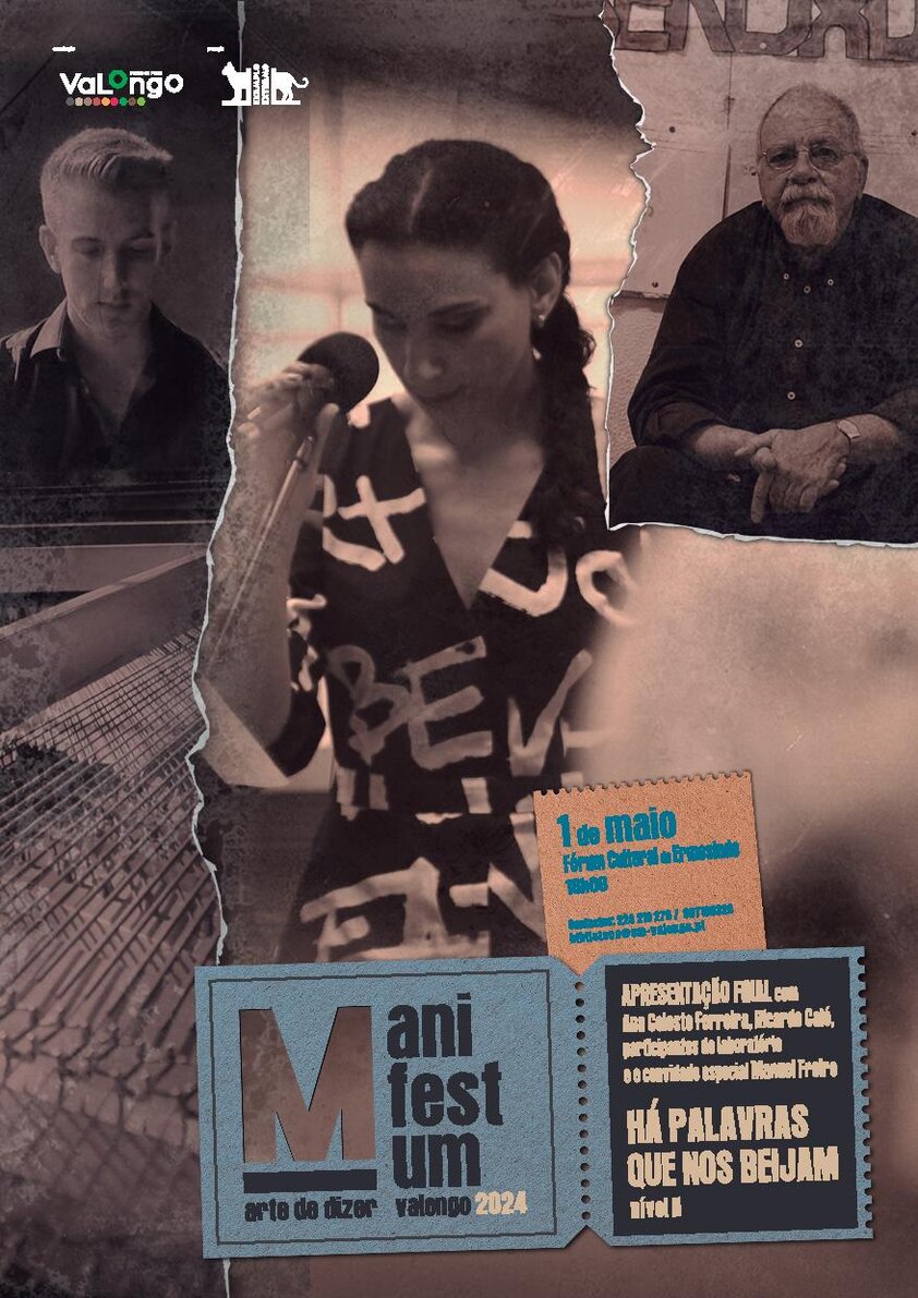 MANIFESTUM arte de dizer é um evento promovido pela 𝗖â𝗺𝗮𝗿𝗮 𝗠𝘂𝗻𝗶𝗰𝗶𝗽𝗮𝗹 𝗱𝗲 𝗩𝗮𝗹𝗼𝗻𝗴𝗼, com programação e produção da 𝗘𝘅𝗲𝗺𝗽𝗹𝗼 𝗘𝘅𝘁𝗿𝗲𝗺𝗼, coordenado pela 𝗕𝗶𝗯𝗹𝗶𝗼𝘁𝗲𝗰𝗮 𝗠𝘂𝗻𝗶𝗰𝗶𝗽𝗮𝗹 𝗱𝗲 𝗩𝗮𝗹𝗼𝗻𝗴𝗼.