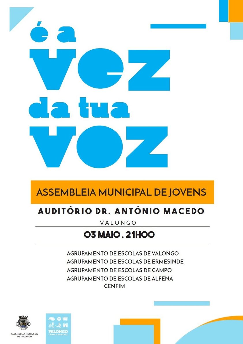 A Assembleia Municipal de Jovens realiza-se no dia 03 de maio, pelas 21h00, no Auditório Dr. António Macedo, em Valongo.