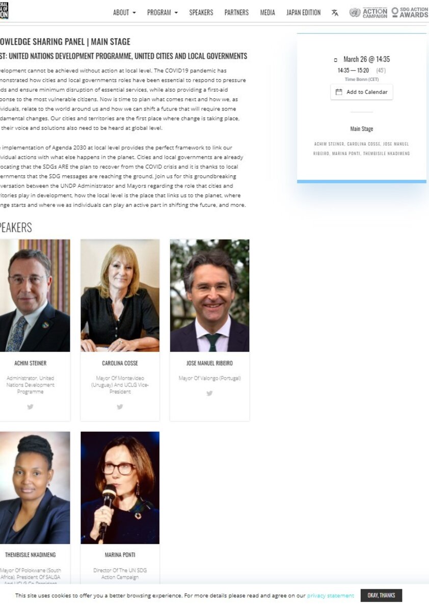 “É uma honra participar neste debate global com representantes da ONU e da UCLG (United Cities and Local Governments) e contribuir para demonstrar a importância dos governos locais e da democracia participativa na construção de um futuro verdadeiramente sustentável. A partilha de experiências implementadas a nível a local é decisiva para encontrar as soluções que abram o caminho para um mundo melhor para todas as pessoas”, considera José Manuel Ribeiro, que também é Conselheiro Político da UCLG.