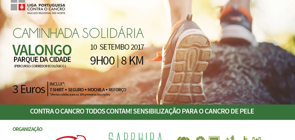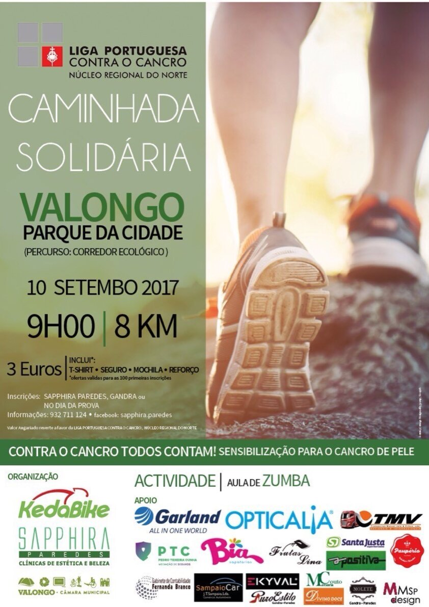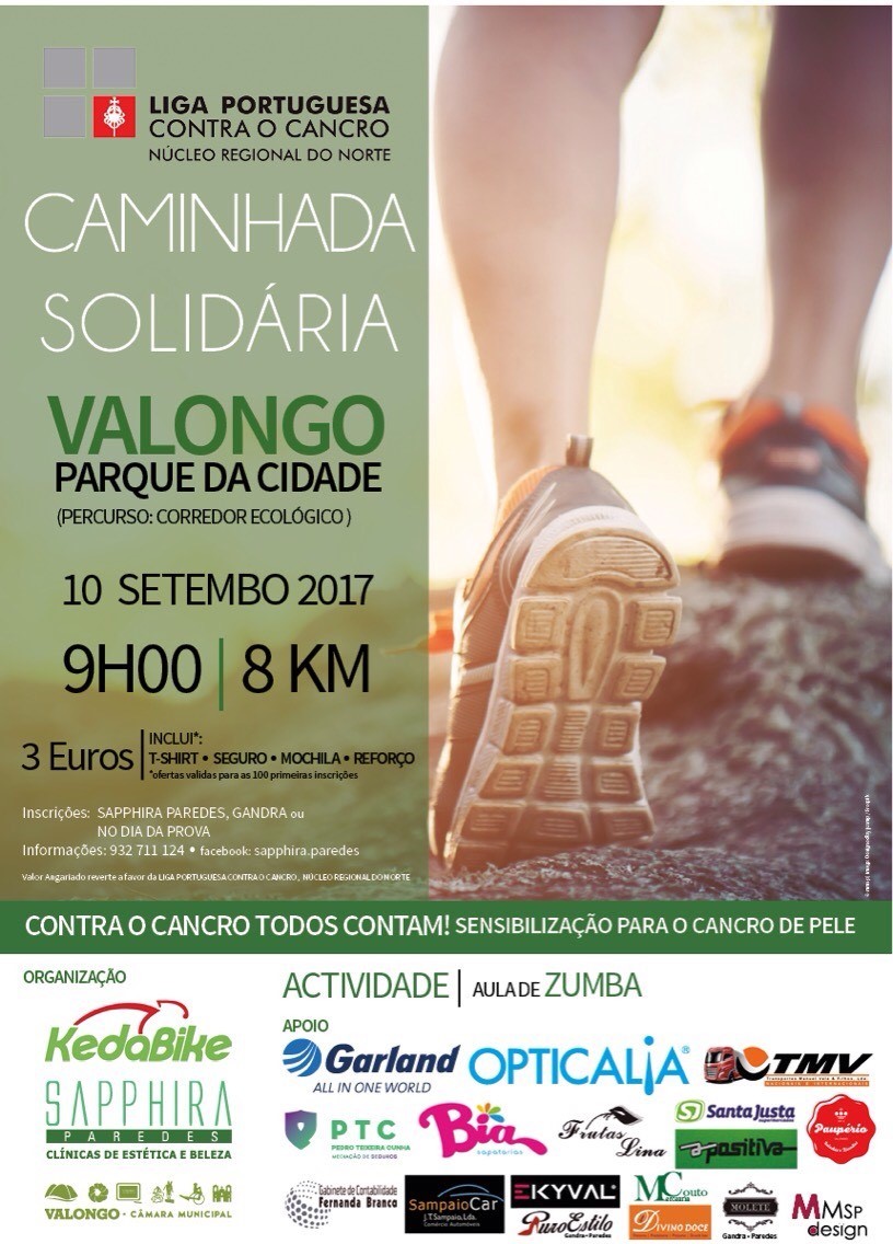 Com o apoio do Município de Valongo, no próximo domingo, dia 10 de setembro, pelas 09h00, realiza-se uma caminhada solidária a favor do doente oncológico, com partida e chegada no Parque Urbano de Valongo.