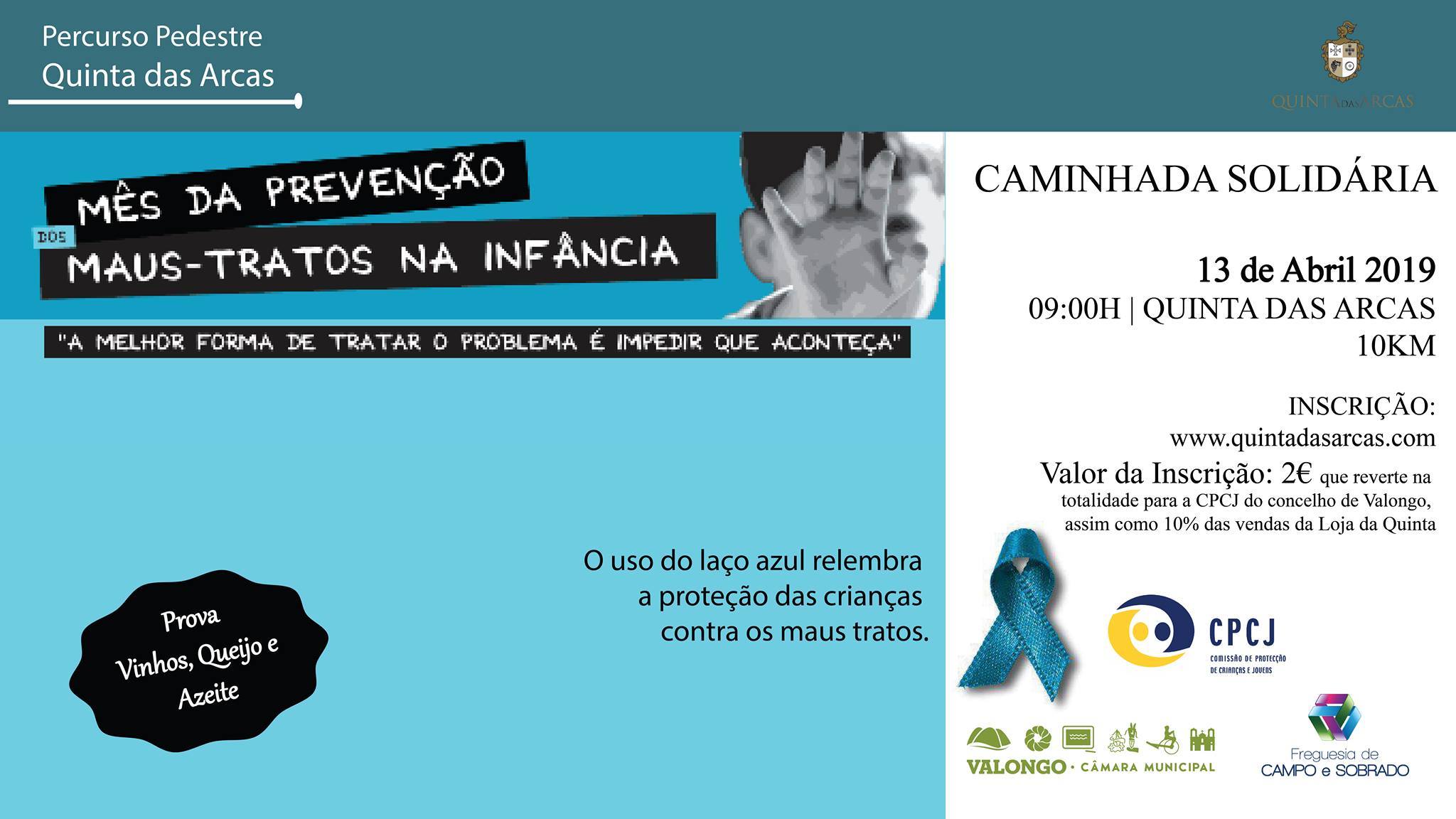 A próxima caminhada no Percurso Pedestre da Quinta das Arcas realiza-se dia 13 de abril e terá como tema a Prevenção dos Maus Tratos na Infância.