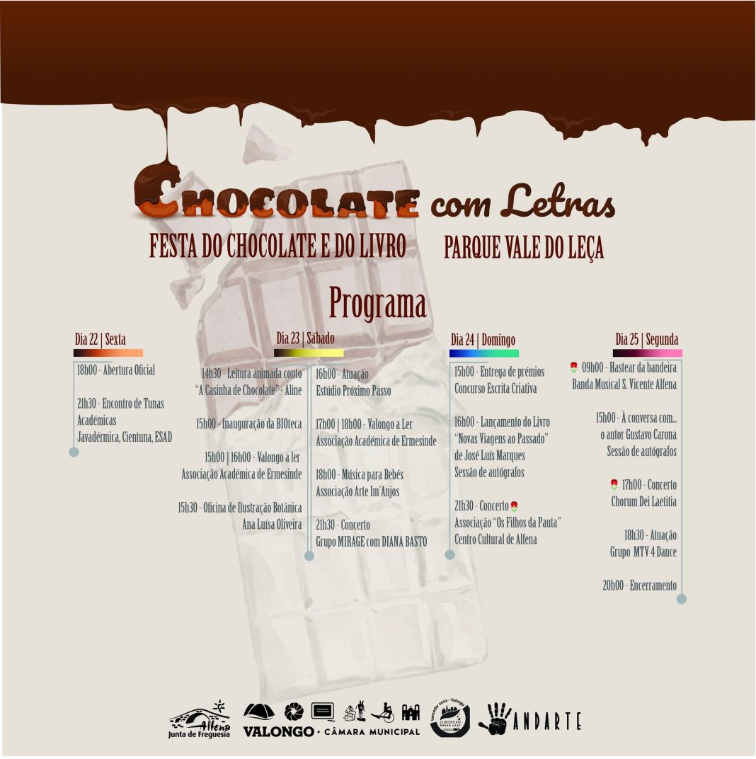 O evento «Chocolate com Letras - Festa do Chocolate e do Livro» realiza-se entre os dias 22 e 25 de abril, no Parque Vale do Leça, em Alfena.