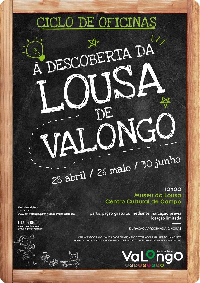 No dia 28 de abril, pelas 10h00, arranca um novo projeto do município de Valongo: À Descoberta da Lousa". Uma vez por mês, ao domingo, o Centro Cultural de Campo recebe crianças dos 3 aos 12 anos, acompanhadas por um adulto, para a realização de oficinas que terão como tema central a lousa.