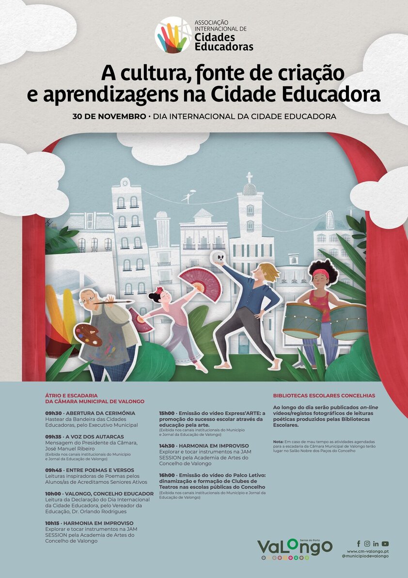 No próximo dia 30 de novembro Valongo associa-se à oitava edição do Dia Internacional da Cidade Educadora sob o lema “A cultura, fonte de criação e de aprendizagem na Cidade Educadora“ com a dinamização de um vasto conjunto de iniciativas (PROGRAMA COMPLETO).