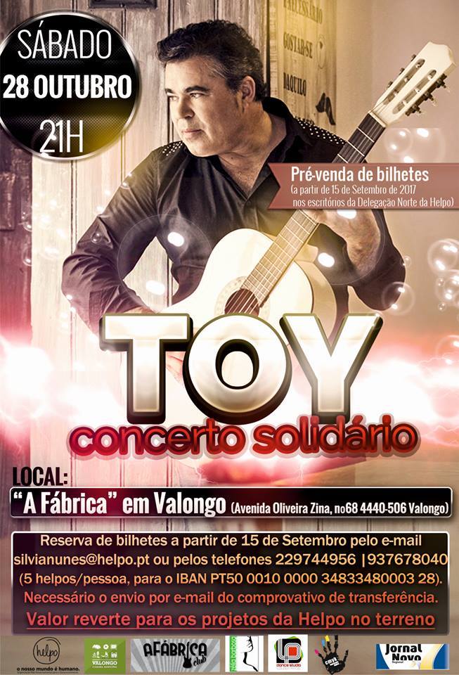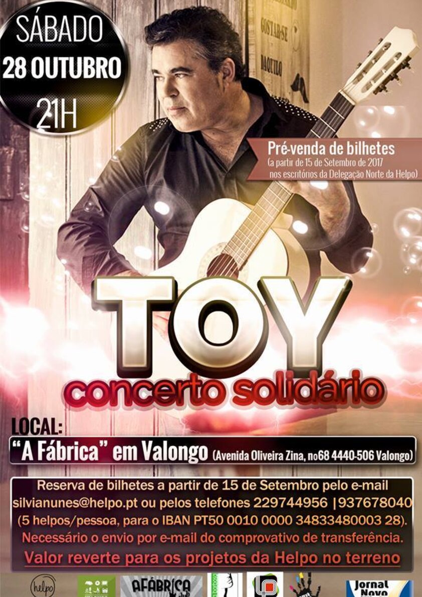 O Concerto Solidário do Toy a favor da associação Helpo realiza-se no dia 28 de Outubro pelas 21h00 no local “A Fábrica”, em Valongo.