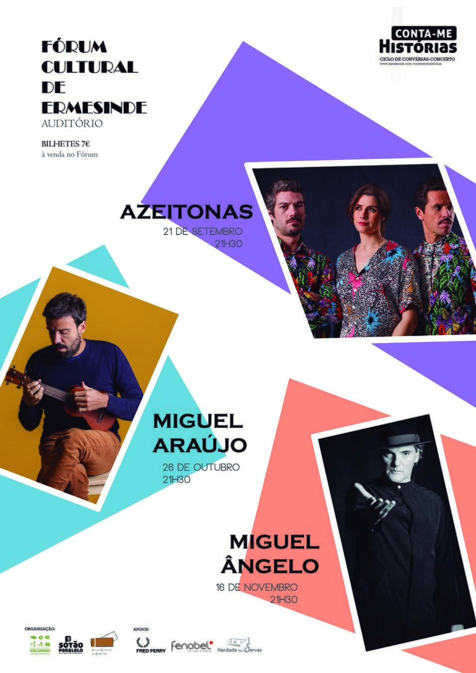 Já no próximo dia 21 setembro, pelas 21h30 o Fórum Cultural de Ermesinde recebe os AZEITONAS em mais uma noite do “Conta-me Histórias” - ciclo de conversas-concerto com conhecidos músicos portugueses, onde estes revelam alguns pormenores menos conhecidos das suas carreiras. Estas histórias são acompanhadas por algumas das suas músicas mais conhecidas, em registo acústico. Conforme a canção dos Xutos & Pontapés trata-se de nos contarem histórias daquilo que não vemos, com uma grande banda sonora.”