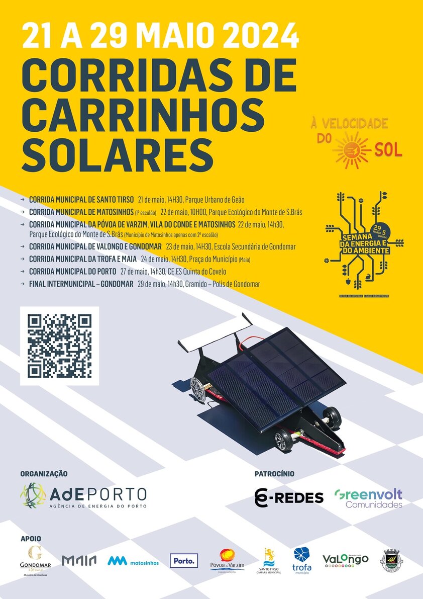 Arranca a 21 e termina a 29 de maio, mais uma edição das Corridas de Carrinhos Solares, uma iniciativa desenvolvida no âmbito da Semana da Energia e do Ambiente. Vão realizar-se seis eliminatórias envolvendo 10 municípios, sendo que a de Valongo será em conjunto com Gondomar, no dia 23 de maio, pelas 14h30, na Escola Secundária de Gondomar.
