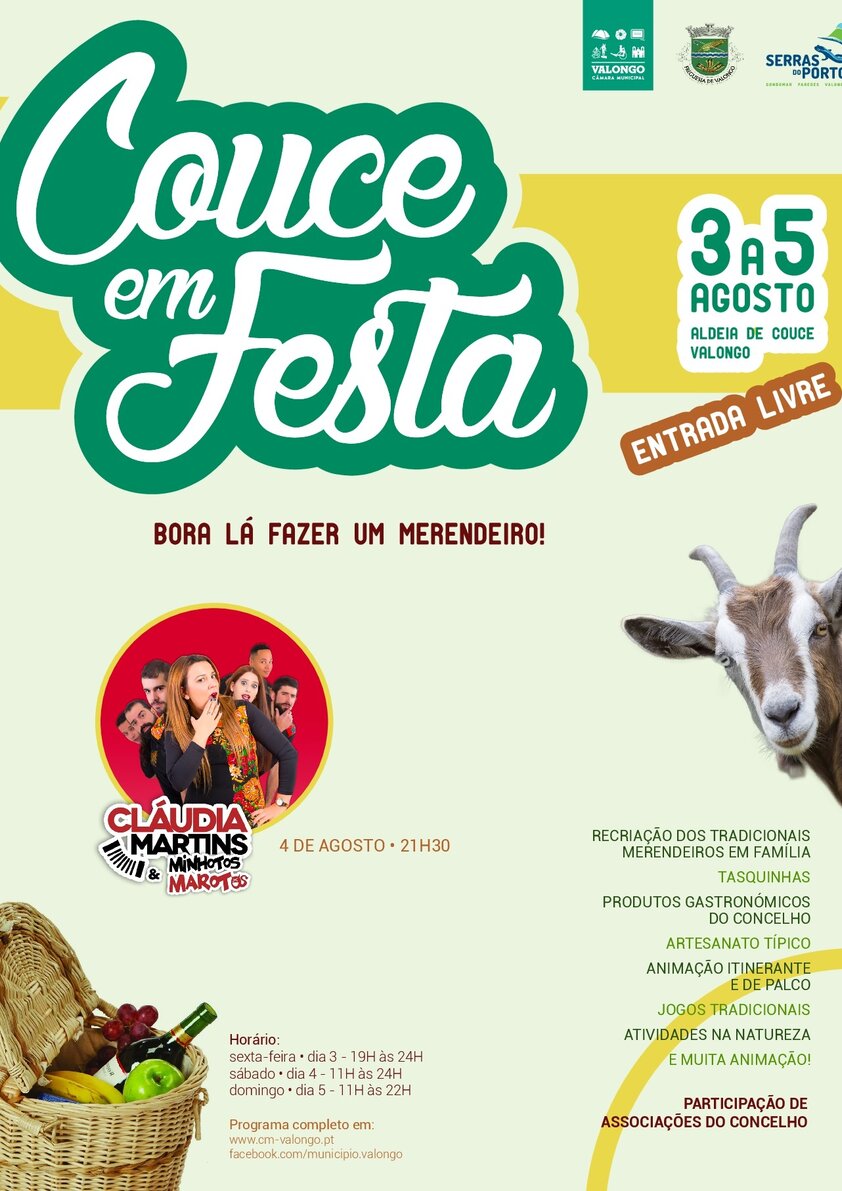 A Câmara Municipal de Valongo promove nos dias 3, 4 e 5 de agosto o evento “Couce em Festa”, que visa a promoção e valorização de uma das mais belas Aldeias de Portugal. Situada no coração do Parque das Serras do Porto, mais precisamente no vale do Rio Ferreira em Valongo, a Aldeia de Couce inclui um pequeno povoado de origens remotas com marcadas vivências rurais, cujo estilo de vida provém da estreita relação com a terra e com os recursos naturais locais.