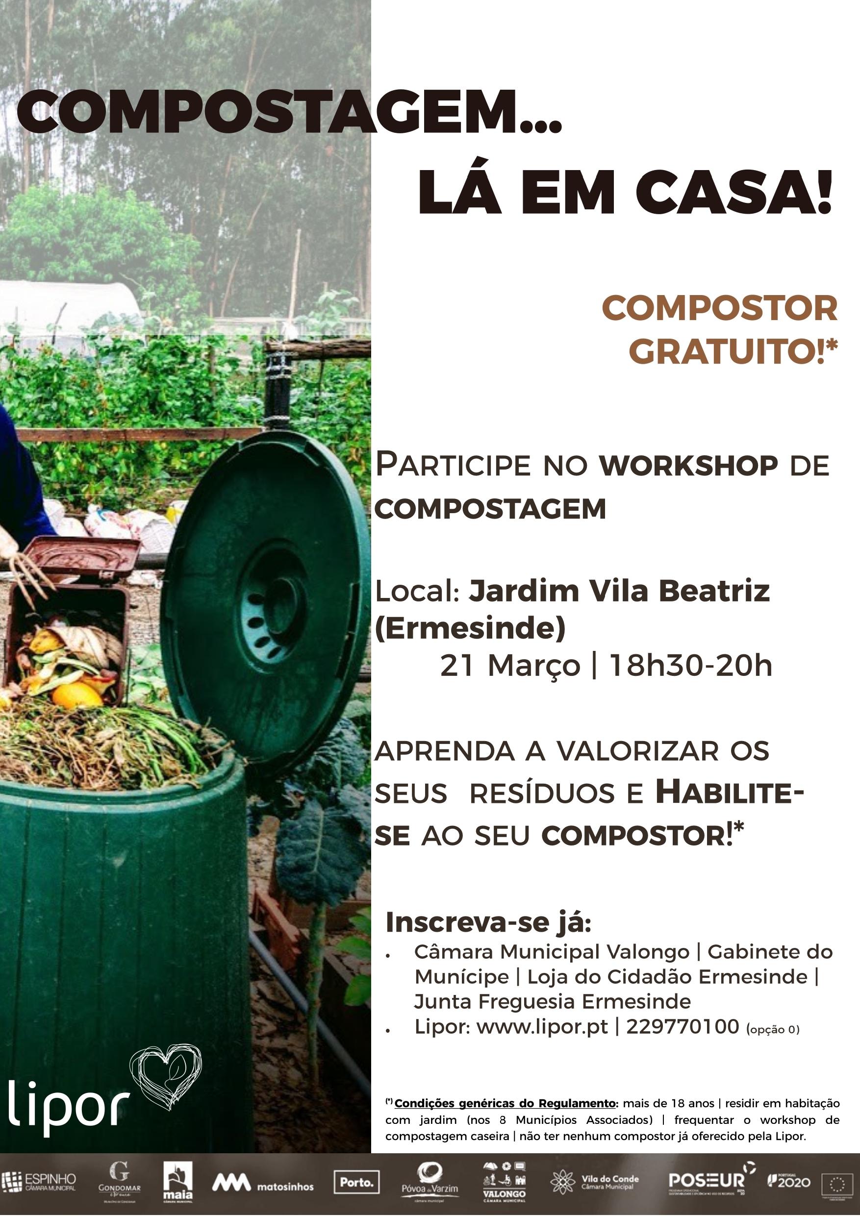 A próxima edição do curso “Compostagem Lá em Casa” realiza-se no dia 21 de março, às 18h30 - 20h00, no Edifício da Vila Beatriz, em Ermesinde.