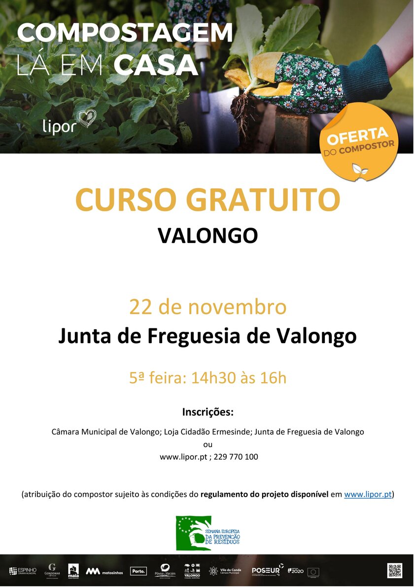 No dia próximo dia 22 de Novembro, quinta-feira, entre as 14h30 e as 16h00, a Junta da Freguesia de Valongo acolhe um curso de compostagem caseira “Despertar consciências e boas práticas - Gostava de ter um adubo natural para a sua horta ou jardim? Faça compostagem caseira, nós oferecemos o compostor!".
