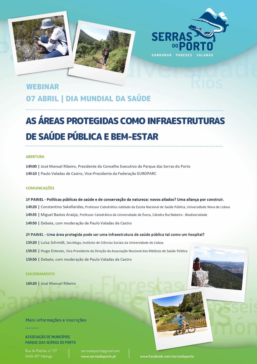 No Dia Mundial da Saúde, 7 de abril, o Parque das Serras do Porto promove uma reflexão sobre a importância das áreas protegidas no contexto da promoção da saúde e do bem-estar da comunidade, algo que tem vindo a ser reconhecido internacionalmente e que merece especial atenção, nomeadamente no decorrer da situação pandémica que enfrentamos.