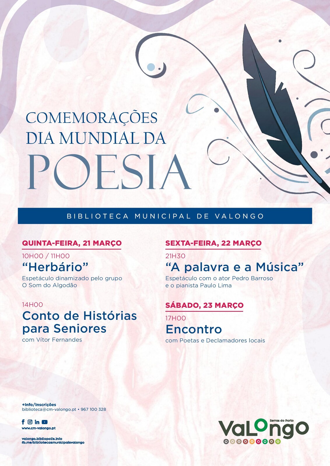 A Biblioteca Municipal de Valongo vai assinalar o Dia Mundial da Poesia com a realização de um conjunto de iniciativas destinadas à população.