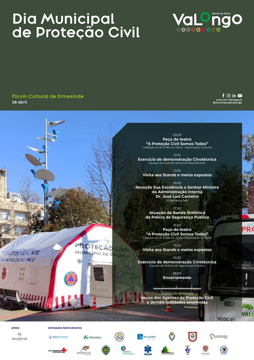 A Câmara Municipal de Valongo vai retomar as comemorações do Dia Municipal da Proteção Civil, tendo como objetivo dar a conhecer à população em geral os diversos agentes da Proteção Civil, que atuam no concelho em prol da segurança de todos os cidadãos.