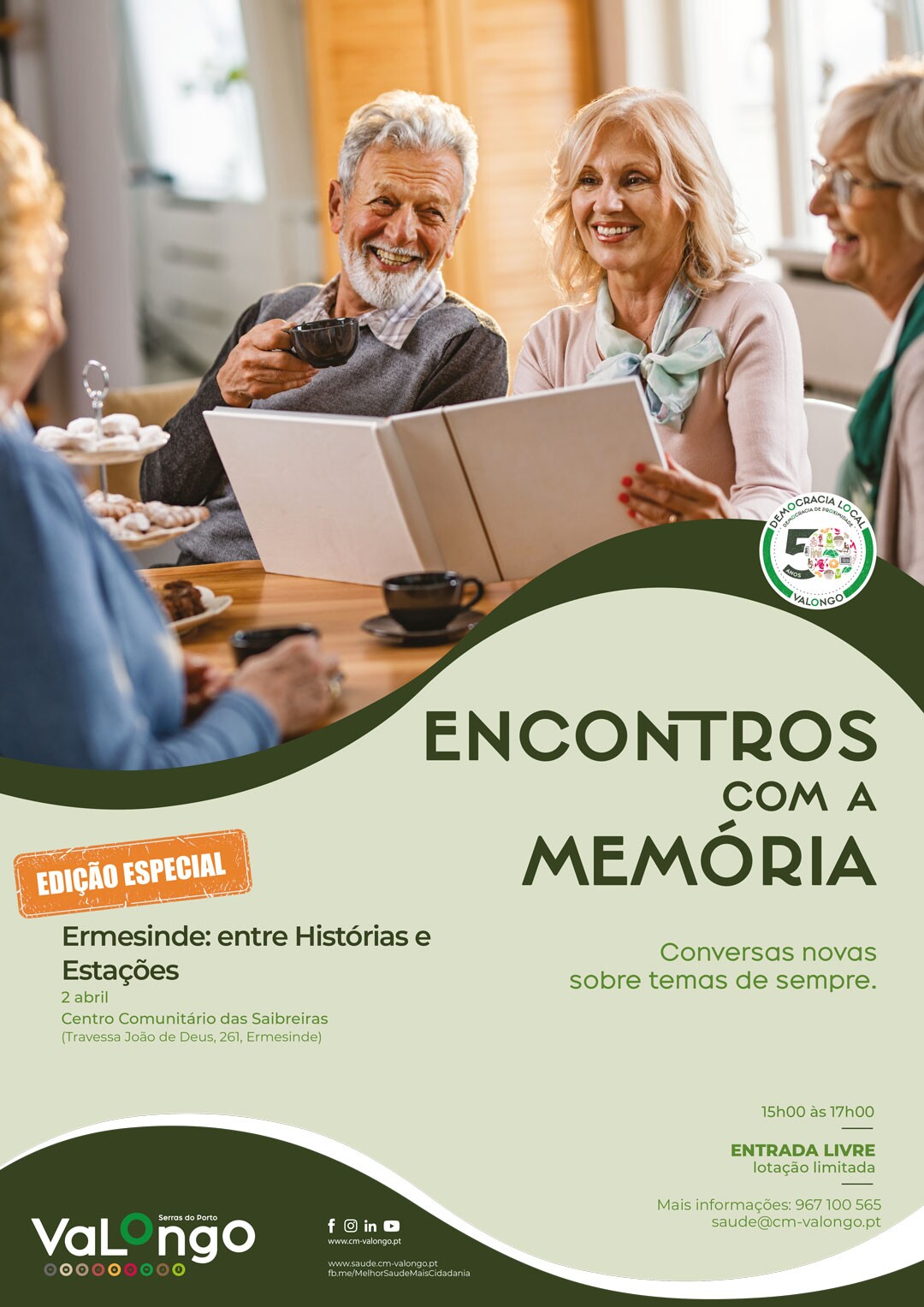 A iniciativa "Encontros com a Memória" terá uma edição especial no próximo dia 02 de abril. Sob o tema "Ermesinde: Entre Histórias e Estações", esta edição decorrerá no Centro Comunitário das Saibreiras (Trvessa João de Deus, 261 - Ermesinde), entre as 15 e as 17 horas.