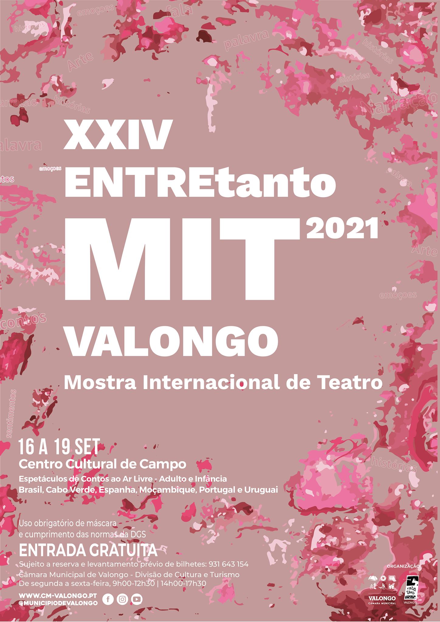 A Câmara Municipal de Valongo e o EntreTanto Teatro realizam a XXIV Edição do ENTREtanto MIT Valongo – Mostra Internacional de Teatro – 2021, de 16 a 19 de setembro, no Centro Cultural de Campo.