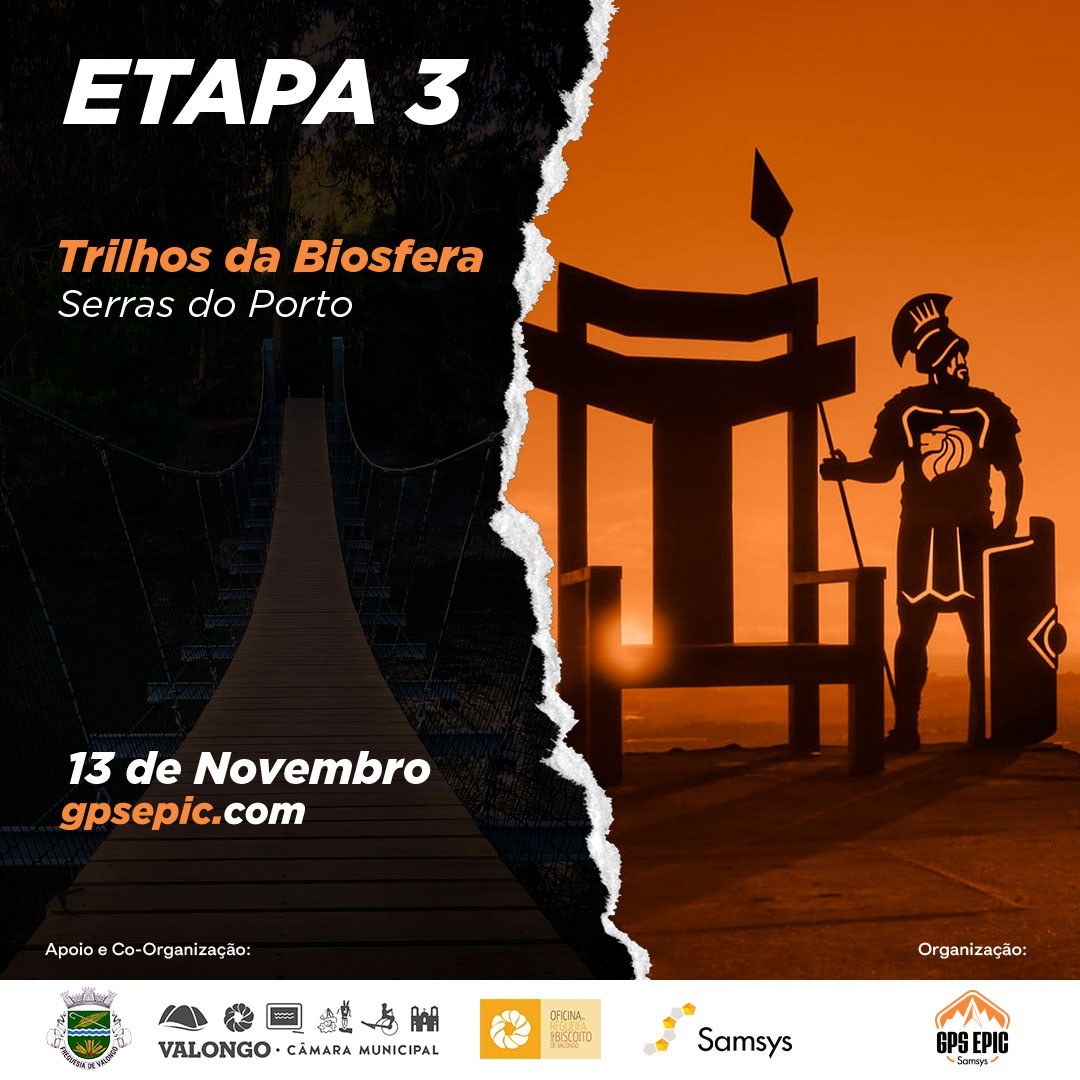 A GPS EPIC - Associação Desportiva, em coorganização com o Município de Valongo, irá levar a efeito a 3.ª Etapa GPS EPIC Samsys - Trilhos da Biosfera - Serras do Porto, que decorrerá no dia 13 de novembro, entre 08h00 e as 17h00, com partida e chegada no Largo do Centenário, prevendo-se a participação de 400 praticantes de BTT.