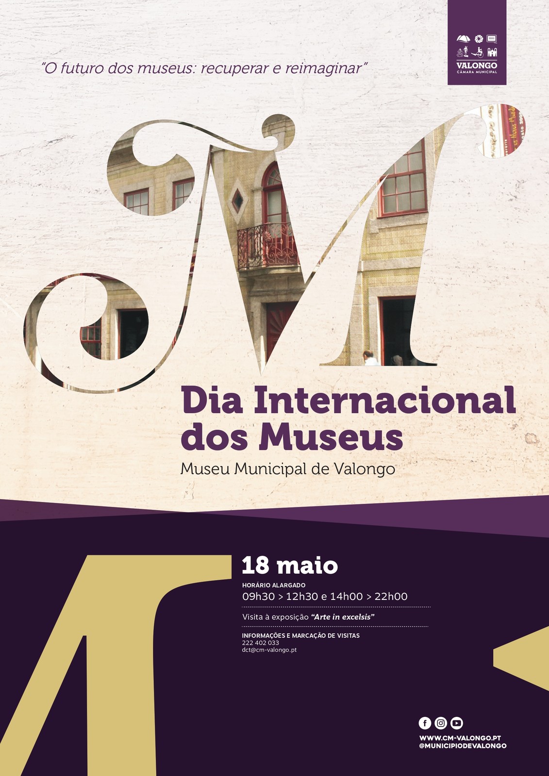 O Museu Municipal de Valongo vai abrir portas para visitas à exposição "Arte in Excelsis", em horário alargado (das 09.30 às 12.30 e das 14.00 às 22.00). Informações e marcações de visitas: Tel. 222 402 033; Email - dct@cm-valongo.pt