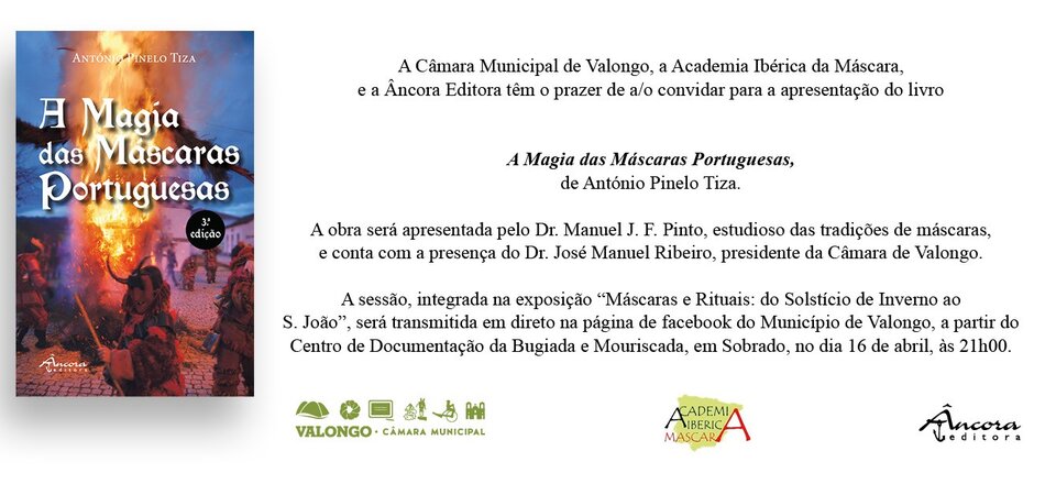 Na sessão de abertura da exposição e da apresentação do livro estarão presentes o Presidente da Câmara Municipal de Valongo, Dr. José Manuel Ribeiro, o Prof. Doutor António Tiza, autor do livro e presidente da Academia Ibérica da Máscara, o Dr. Manuel J. F. Pinto, estudioso das tradições com máscaras e que fará a apresentação do livro, assim como o Dr. António Batista Lopes, da Âncora Editora.