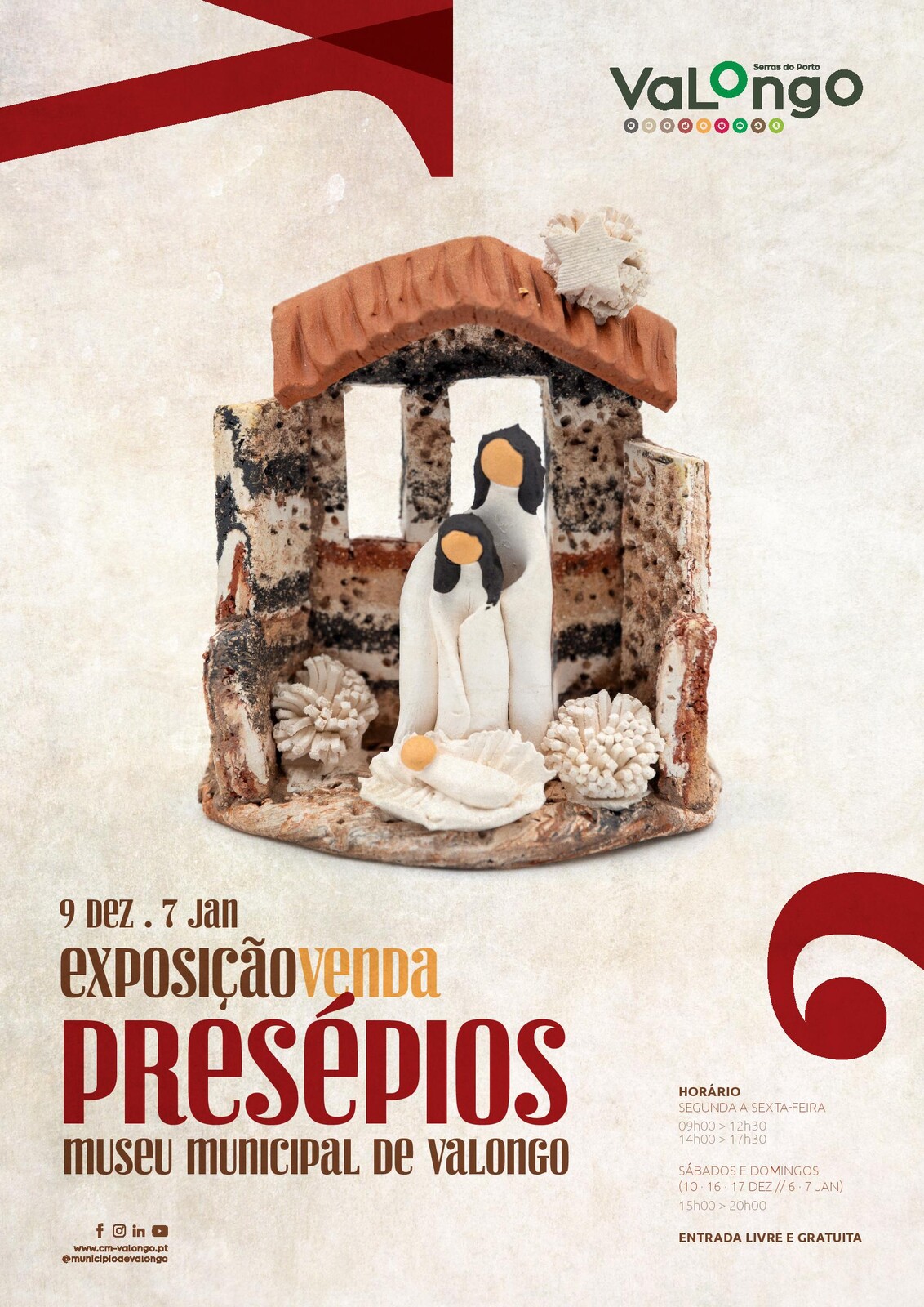 O Museu Municipal de Valongo vai cumprir a tradição e acolher mais uma edição da Exposição de Presépios. De 09 de dezembro a 07 de janeiro, estarão expostos diferentes géneros de presépios, sendo que, como habitualmente, a exposição é acompanhada de uma venda de presépios feitos por diferentes artesãos.