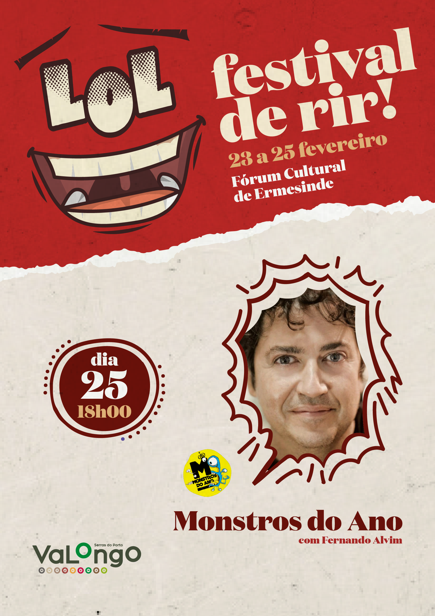 Não perca o encerramento épico do LOL - Festival de Rir! No domingo, dia 25 de fevereiro, pelas 18h00, no Fórum Cultural de Ermesinde, junte-se a nós para uma celebração dos momentos mais insólitos, bizarros e comentados da sociedade portuguesa n'"Os Monstros do Ano", por Fernando Alvim. Com uma década de existência, esta cerimónia única glorifica o insólito, aplaude o disparatado e abraça o que nos torna únicos. Preparem-se para rir e aplaudir os vencedores e vencedoras deste ano!