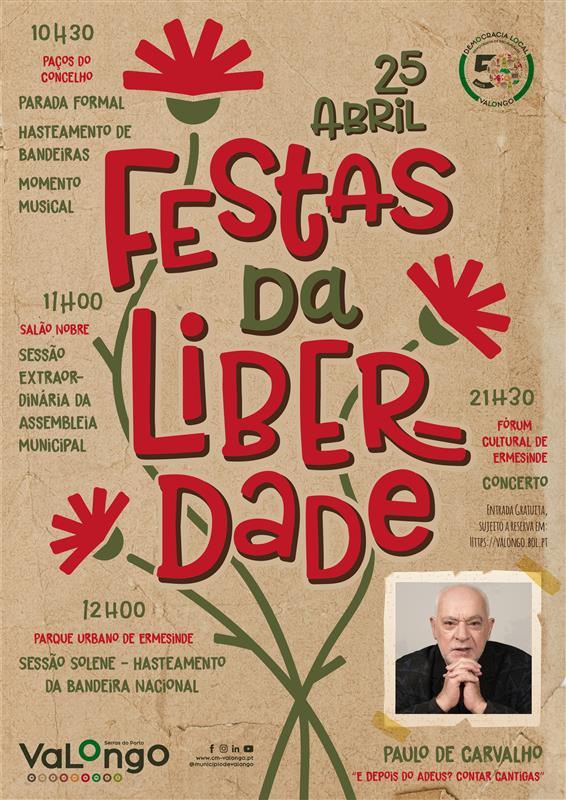 Cumprindo a tradição, o Município de Valongo vai organizar as Festas da Liberdade, uma iniciativa que pretende celebrar a liberdade conquistada em 1974. A edição deste ano terá como ponto alto o concerto de Paulo de Carvalho, "E Depois do Adeus? Contar cantigas", que se realiza no dia 25 de abril, pelas 21h30, no Fórum Cultural de Ermesinde.