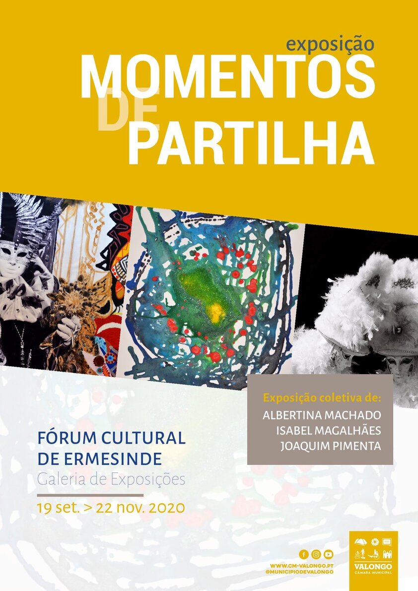 No próximo dia 19 de setembro, pelas 16h00, a Galeria Museológica do Fórum Cultural de Ermesinde, acolhe a inauguração da exposição de pintura e fotografia "Momentos de Partilha", da autoria de Albertina Machado, Isabel Magalhães e Joaquim Pimenta.