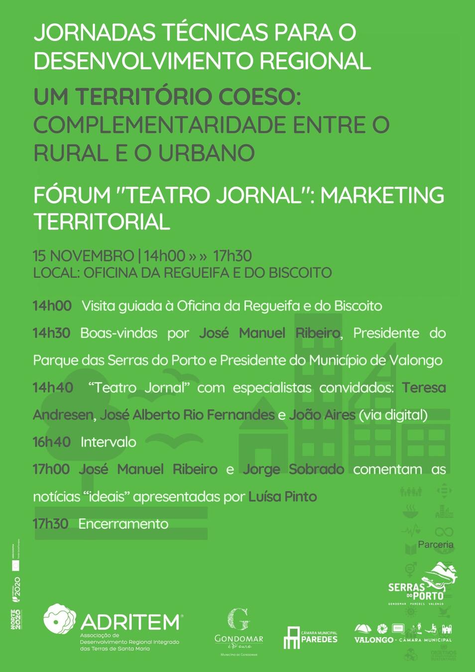 A ADRITEM e o Parque das Serras do Porto dinamizam o Fórum ”Um Território Coeso: Complementaridade entre o Rural e o Urbano”, com a sub temática Marketing Territorial, no dia 15 de novembro, entre as 14h00 e as 17h30.