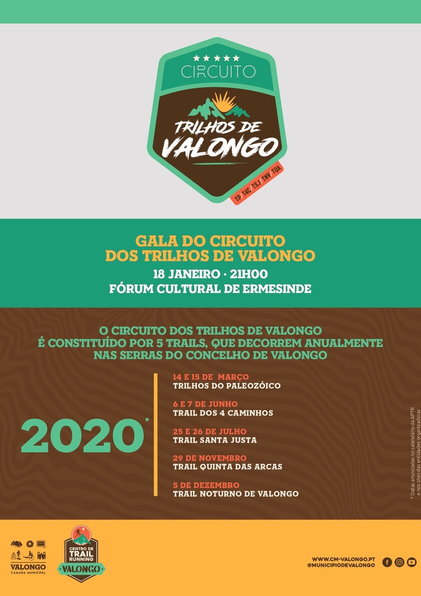 A Câmara Municipal de Valongo irá realizar a 4.ª Gala do Circuito Trilhos de Valongo 2019, no dia 18 de janeiro de 2020, pelas 21h00, no Fórum Cultural de Ermesinde, tendo como principal objetivo premiar os melhores atletas que participaram nos 5 trails, realizados ao longo do ano de 2019: