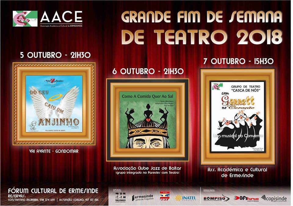 O Grupo de Teatro "Casca de Nós" da AACE - Associação Académica e Cultural de Ermesinde promove mais um Grande Fim de Semana de Teatro, nos dias 5, 6, e 7 de Outubro, no Fórum Cultural de Ermesinde.
