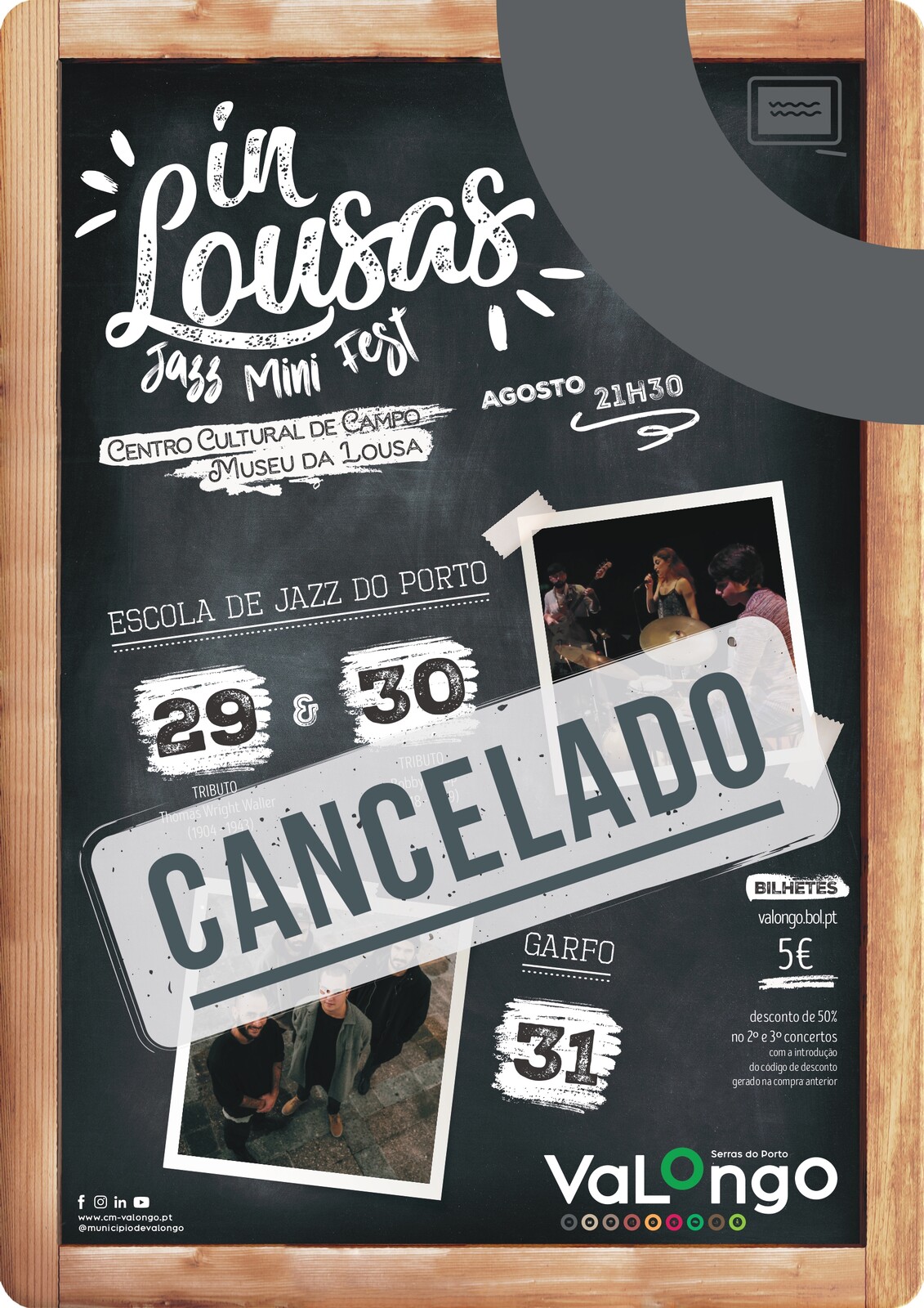 Por motivos alheios ao Município e aos artistas, o Jazz Mini Fest, agendado para dias 29, 30 e 31 de agosto, no Centro Cultural de Campo / Museu da Lousa, terá de ser cancelado. Oportunamente anunciaremos nova data. Agradecemos a compreensão e informamos que o reembolso do valor do bilhete será efetuado até ao dia 1 de outubro de 2024