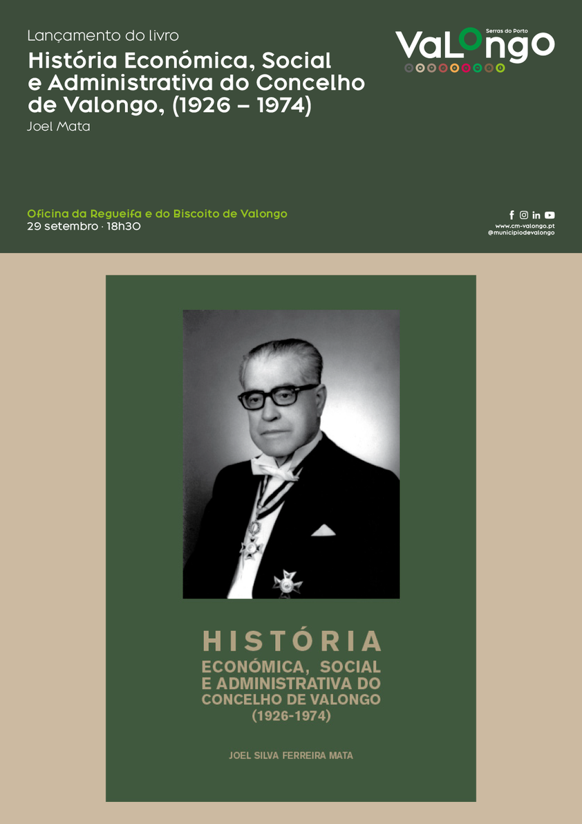 O novo livro de Joel Mata, “História Económica, Social e Administrativa do Concelho de Valongo (1926 – 1974)", vai ser lançado no próximo dia 29 de setembro, pelas 18h30, no Rooftop da Oficina da Regueifa e do Biscoito de Valongo.