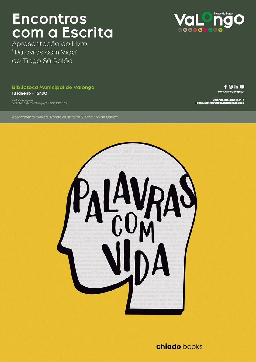 No âmbito de mais uma iniciativa "Encontros com a Escrita", o autor Tiago Sá Balão apresenta no próximo dia 13 de janeiro, pelas 15h30, na Biblioteca Municipal de Valongo, o livro "Palavras com Vida".
