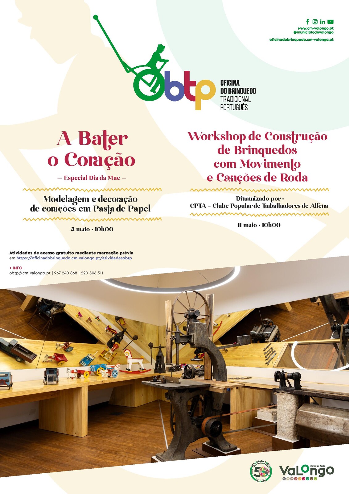 Na semana seguinte, a 11 de maio, pelas 10h, terá lugar o workshop “Construção de Brinquedos com Movimento”, uma atividade dinamizada pelo Clube Popular de Trabalhadores de Alfena (CPTA).