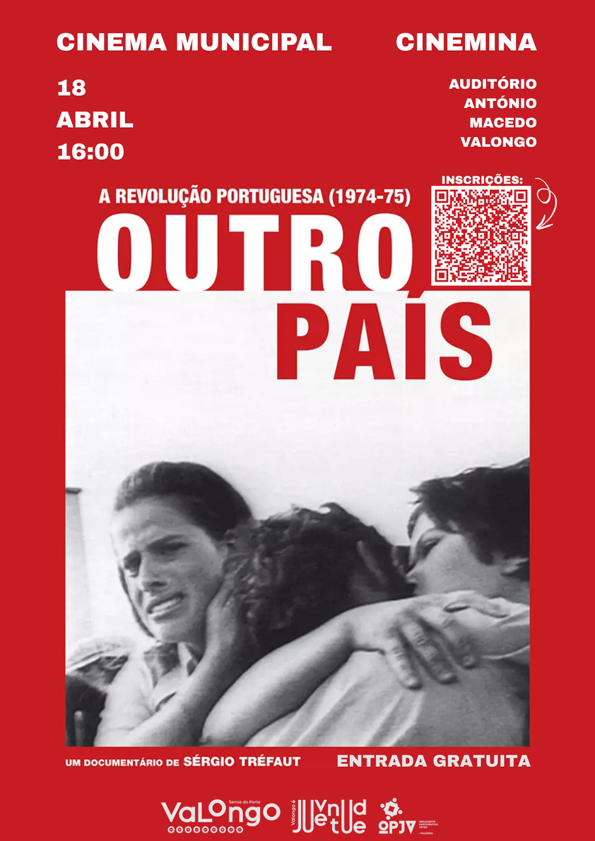 No próximo dia 18 de abril, pelas 16h00, o Auditório António Macedo, em Valongo, recebe a sessão de Cinema Municipal, no âmbito do OPJV Cinema Municipal, "Outro País", um filme com imagens reais da altura em que tudo estava a acontecer — pessoas na rua, mudança no ar e um país inteiro a transformar-se.