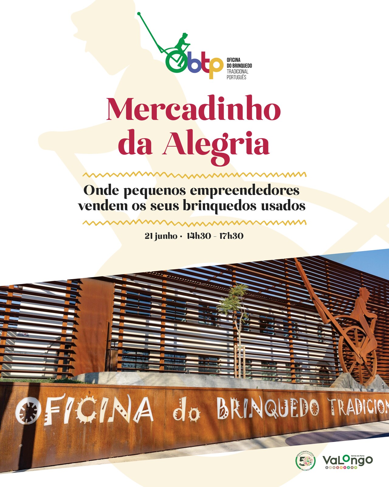 O Mercadinho da Alegria está de regresso à Oficina do Brinquedo Tradiconal Português, em Alfena. No dia 21 de junho, entre as 14h30 e as 17h30, os pequenos empreendedores terão oportunidade de vender os seus brinquedos usados e outros a oportunidade de comprar.
