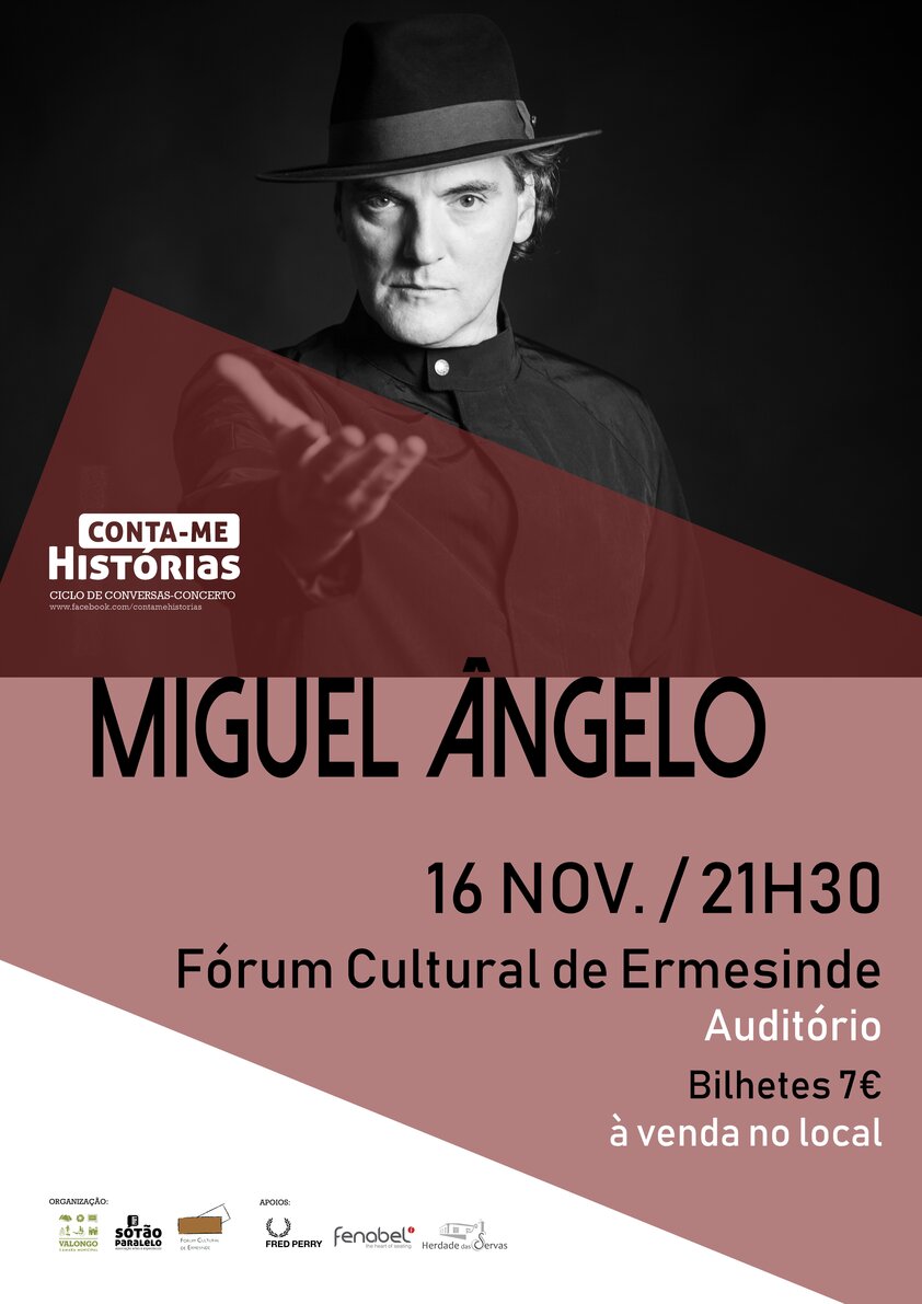 Dia 16 de novembro, pelas 21h30, recebemos MIGUEL ÂNGELO que, com toda a certeza nos irá presentear com histórias empolgantes ao som das suas belissimas musicas. Contamos com a vossa presença para uma noite que será de partilha. Para mediar a conversa teremos em palco o programador cultural e jornalista musical, Artur Silva, o pivot de informação da RTP, Jorge Oliveira, e o jornalista e crítico literário, Tito Couto.