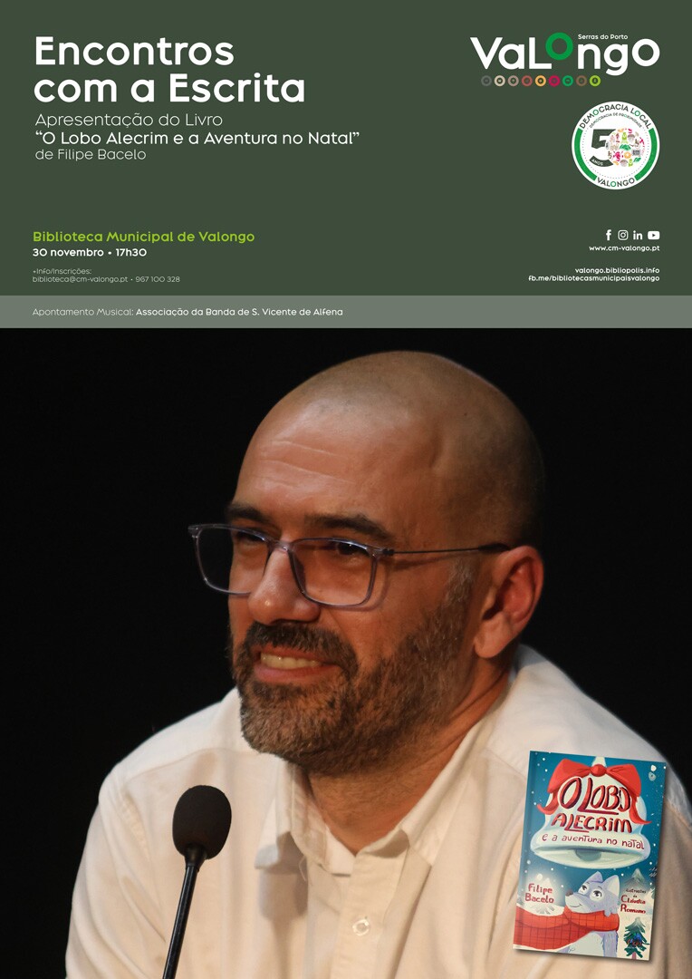 No próximo dia 30 de novembro, pelas 17h30, a Biblioteca Municipal de Valongo vai ser palco da apresentação do livro “O Lobo Alecrim e a Aventura no Natal” de Filipe Bacelo. Esta iniciativa contará com a realização de um Apontamento Musical a cargo da Associação da Banda de S. Vicente de Alfena.