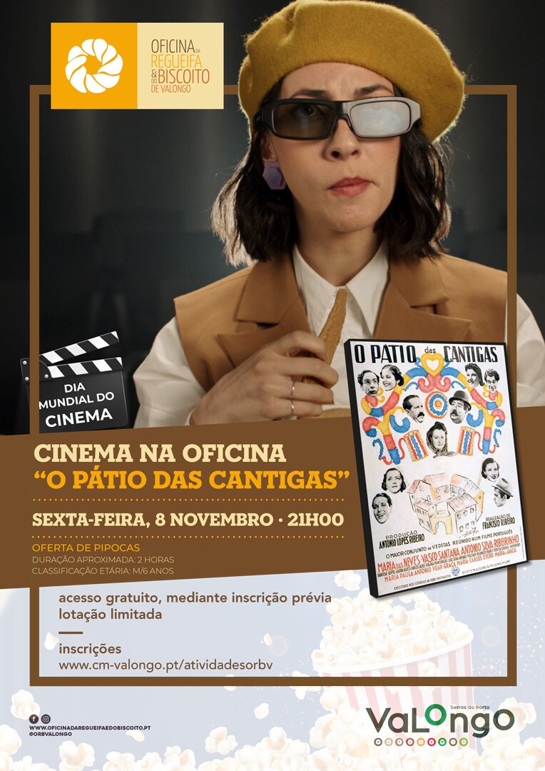 No âmbito das comemorações do Dia Mundial do Cinema, a Oficina da Regueifa e do Biscoito de Valongo vai exibir um dos mais icónicos filmes portugueses, "O Pátio das Cantigas". Será no dia 08 de novembro, pelas 21h00, sendo que o acesso é gratuito, mas de inscrição obrigatória em www.cm-valongo.pt/atividadesorbv .