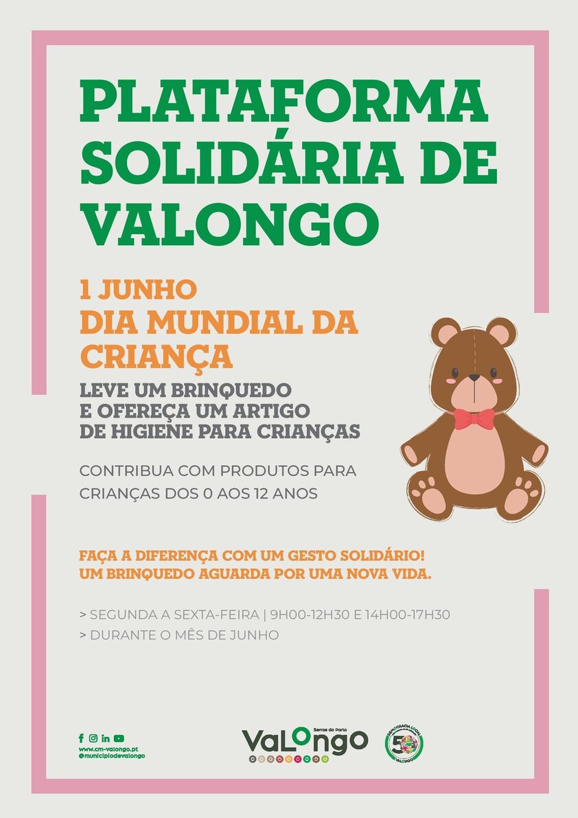 Plataforma Solidária de Valongo com campanha 'Ofereça um artigo de higiene para crianças e leve um brinquedo'