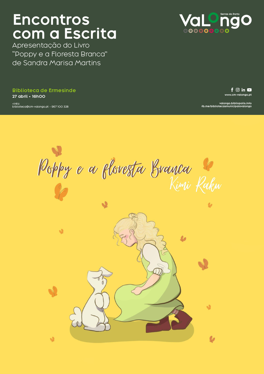 A Biblioteca de Ermesinde vai receber no próximo dia 27 de abril, pelas 16h00, mais uma edição do "Encontros com a Escrita". A convidada será a escritora Sandra Marisa Martins que irá apresentar a sua obra "Poppy e a Floresta Branca".