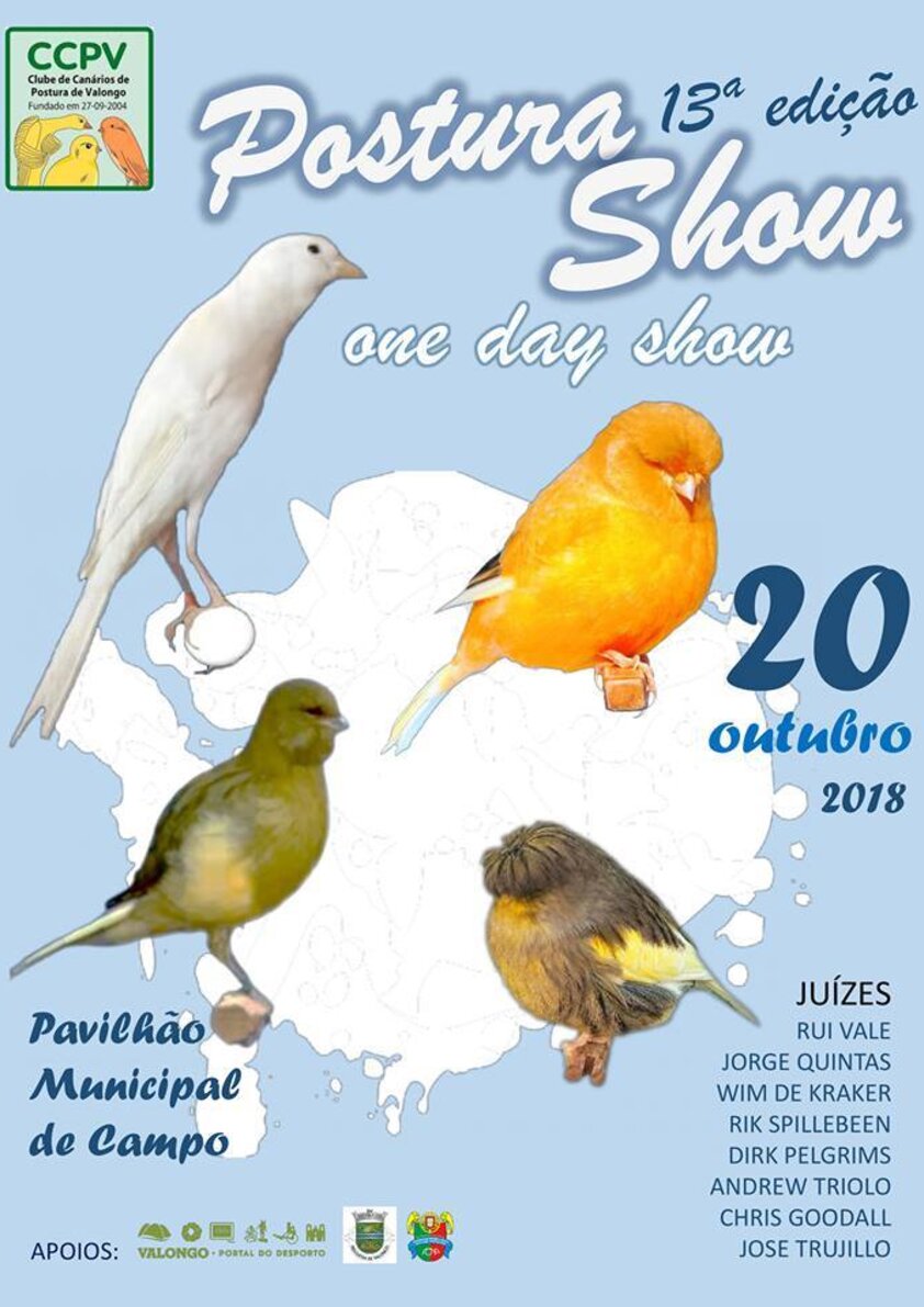 O Clube de Canários de Postura de Valongo, com o apoio da Câmara Municipal, vai promover no dia 20 de outubro, no Pavilhão n.º 2 de Campo, a 13ª edição do evento “Postura Show - One Day Show de Valongo”.