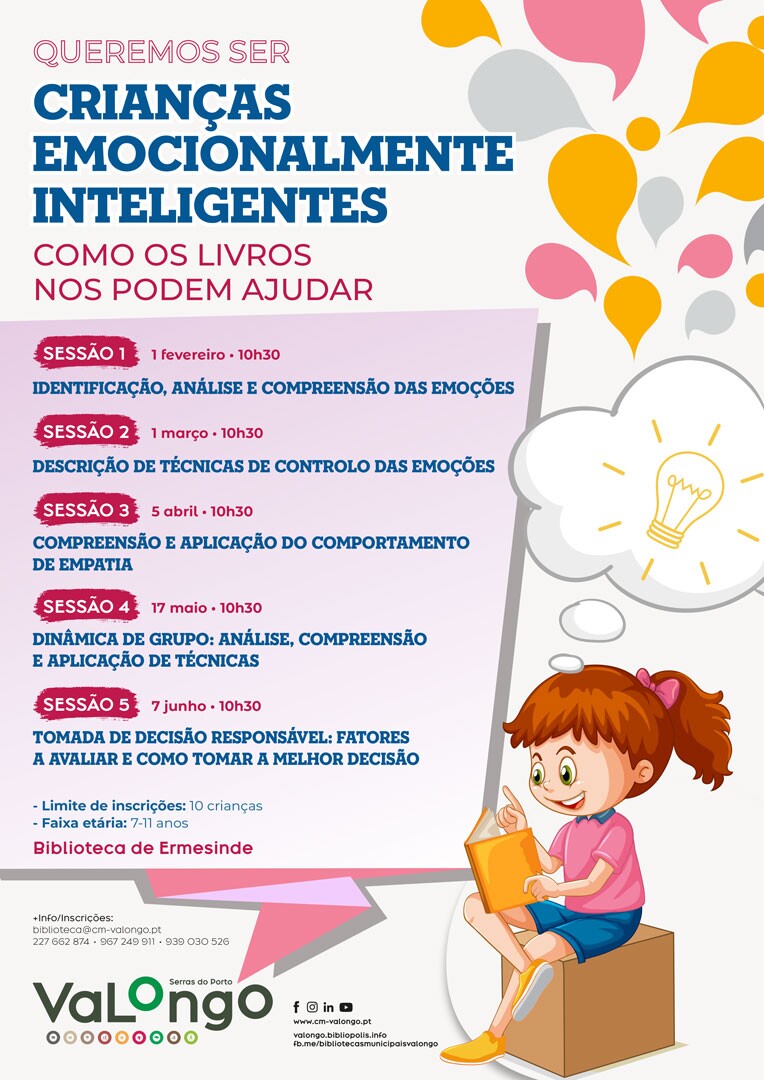 A Biblioteca de Ermesinde é a casa da iniciativa "Queremos ser Crianças emocionalmente inteligentes" e no próximo dia 07 de junho, pelas 10h30, recebe a última sessão do ciclo de 2025. "Tomada de decisão responsável: fatores a avaliar e como tomar a melhor decisão" é o tema desta sessão que se destina a crianças entre os 7 e 11 anos e é limitada à participação de 10 crianças.