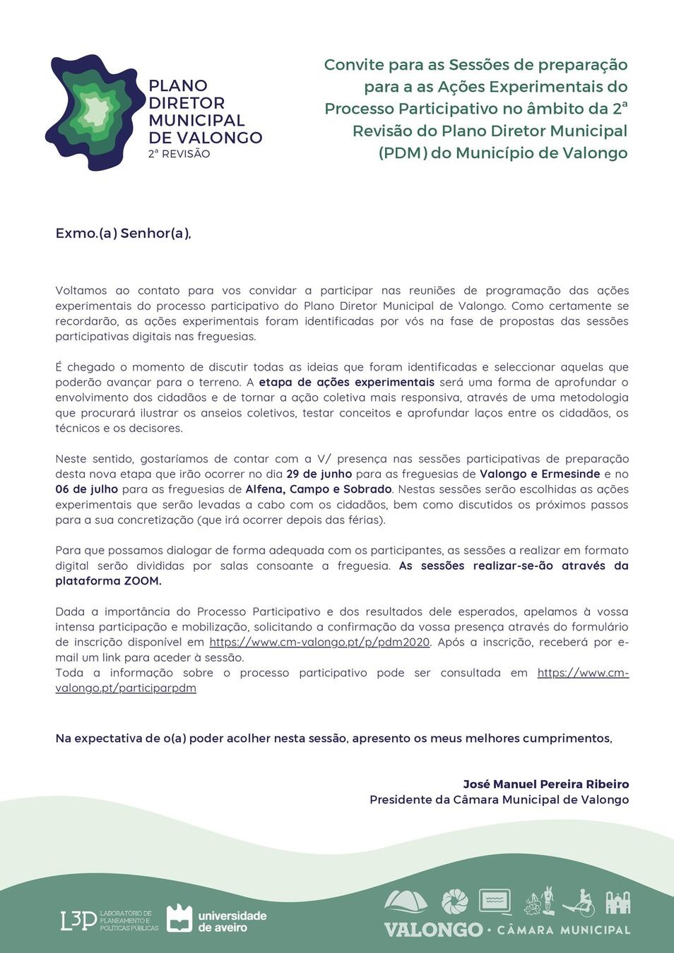 Sessões digitais de preparação AÇOES EXPERIMENTAIS I Processo Participativo da 2.º revisão do PDM de Valongo