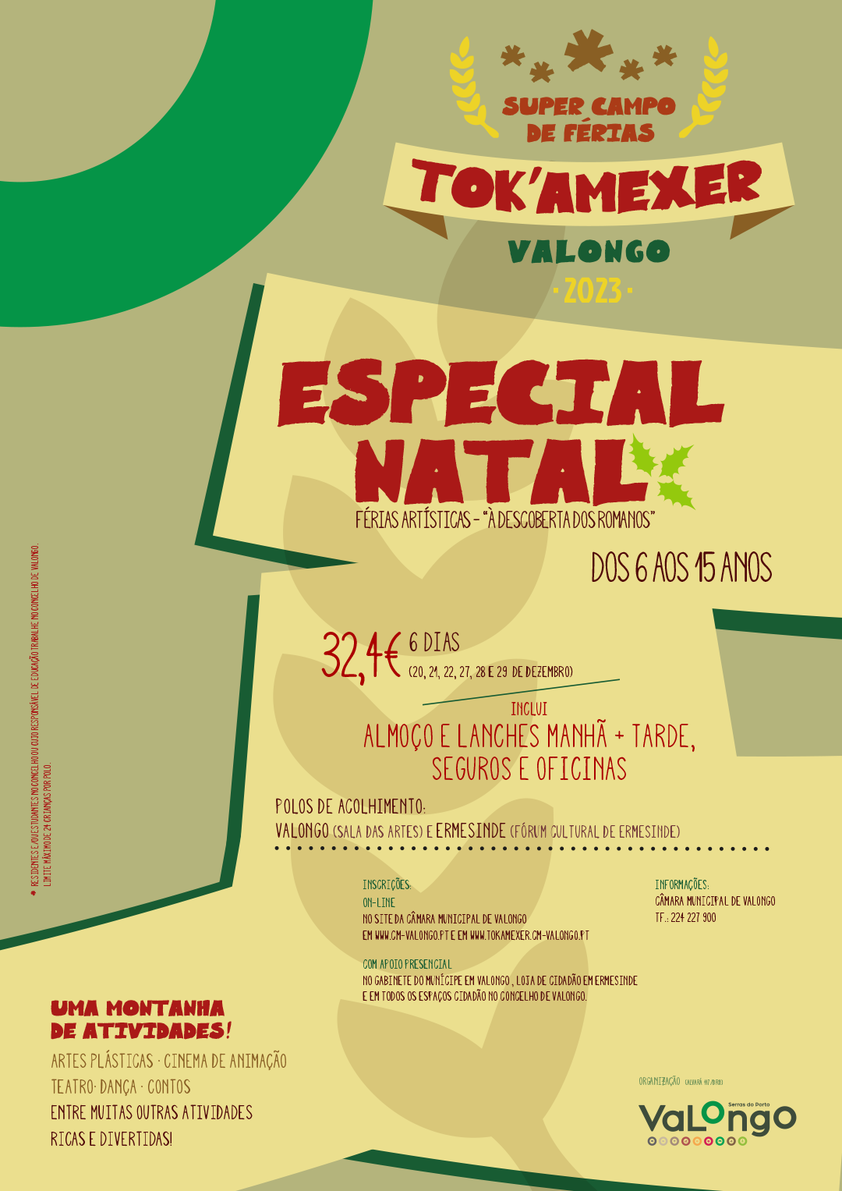 A edição especial de Natal do Tok'Amexer está de regresso. Sob o tema "À descoberto dos Romanos", estas férias artísticas prometem muita animação durante as duas semanas da pausa letiva. As inscrições iniciam-se a 23 de novembro, às 09h30.