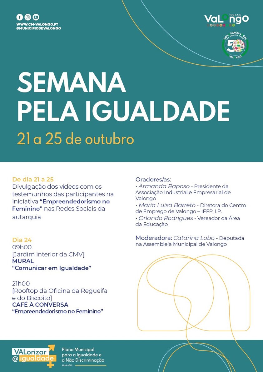 De 21 a 25 de outubro, o Município de Valongo assinala, uma vez mais, a Semana pela Igualdade, com um conjunto de atividades que pretendem sensibilizar a comunidade para temáticas de inclusão, diversidade e igualdade de género.