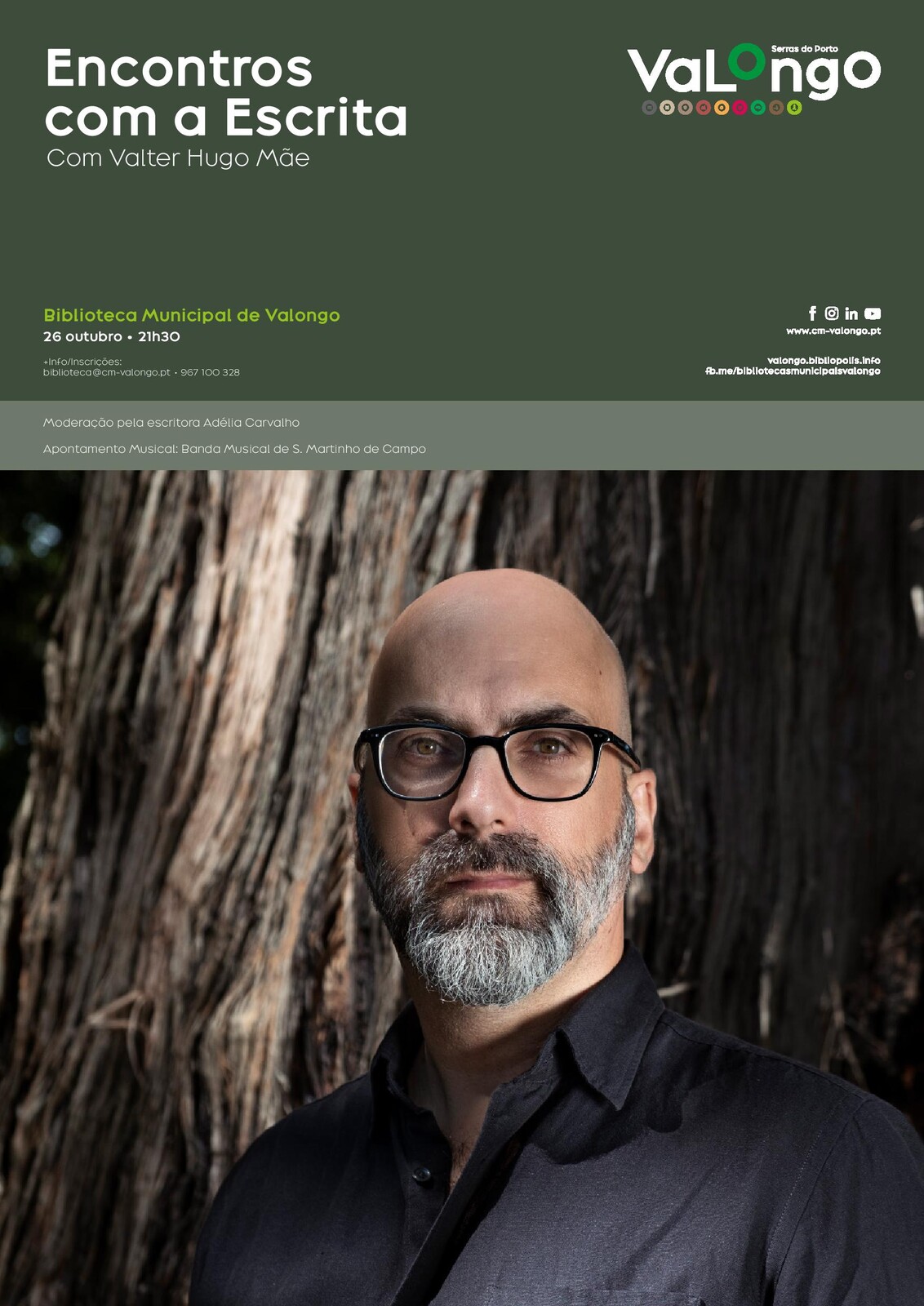 O conceituado escritor Valter Hugo Mãe é o próximo convidado do "Encontros com a Escrita", uma atividade promovida pela autarquia de Valongo. Assim, no dia 26 de outubro, pelas 21h30, a Biblioteca Municipal de Valongo recebe Valter Hugo Mãe para uma conversa, moderada por Adélia Carvalho, que permitirá, seguramente, conhecer um pouco mais da vida e obra do autor.